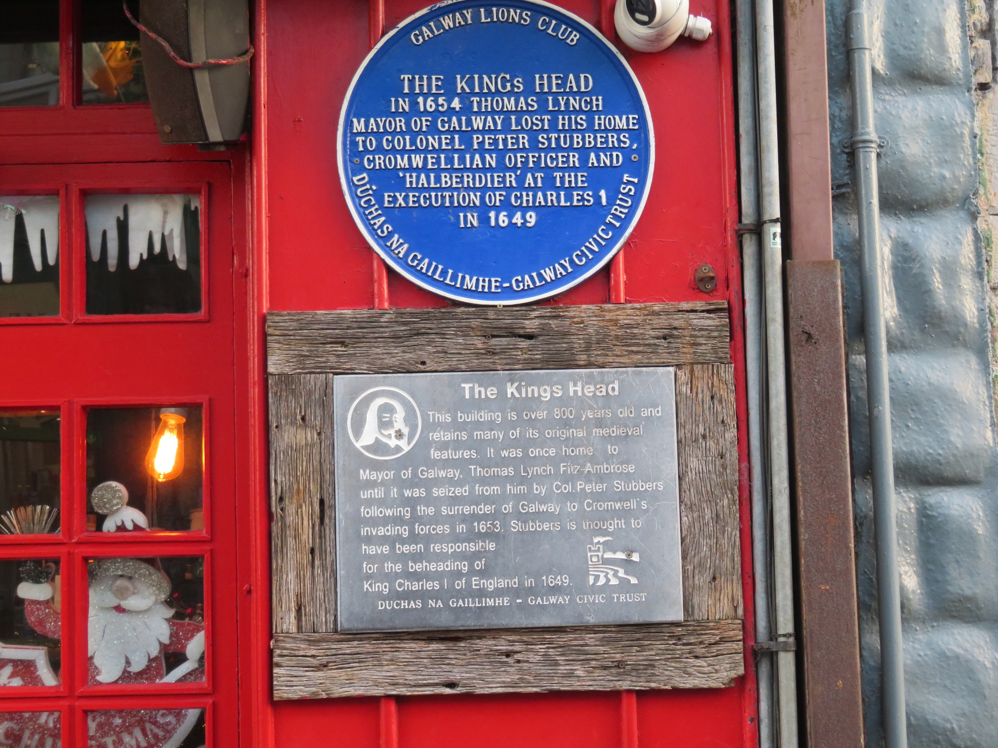 Following the execution, Cromwell’s army came to Ireland to assert their authority. They laid siege to Galway, led by one of Cromwell’s most trusted and loyal henchmen, Colonel Peter Stubbers. After Galway’s surrender in 1653, Stubbers became the town’s military Governor, and later evicted Mayor Lynch Fitz-Ambrose, and took over his splendid house at 15, High Street. Stubbers made himself the 1st English and 1st non-tribal Mayor of Galway.