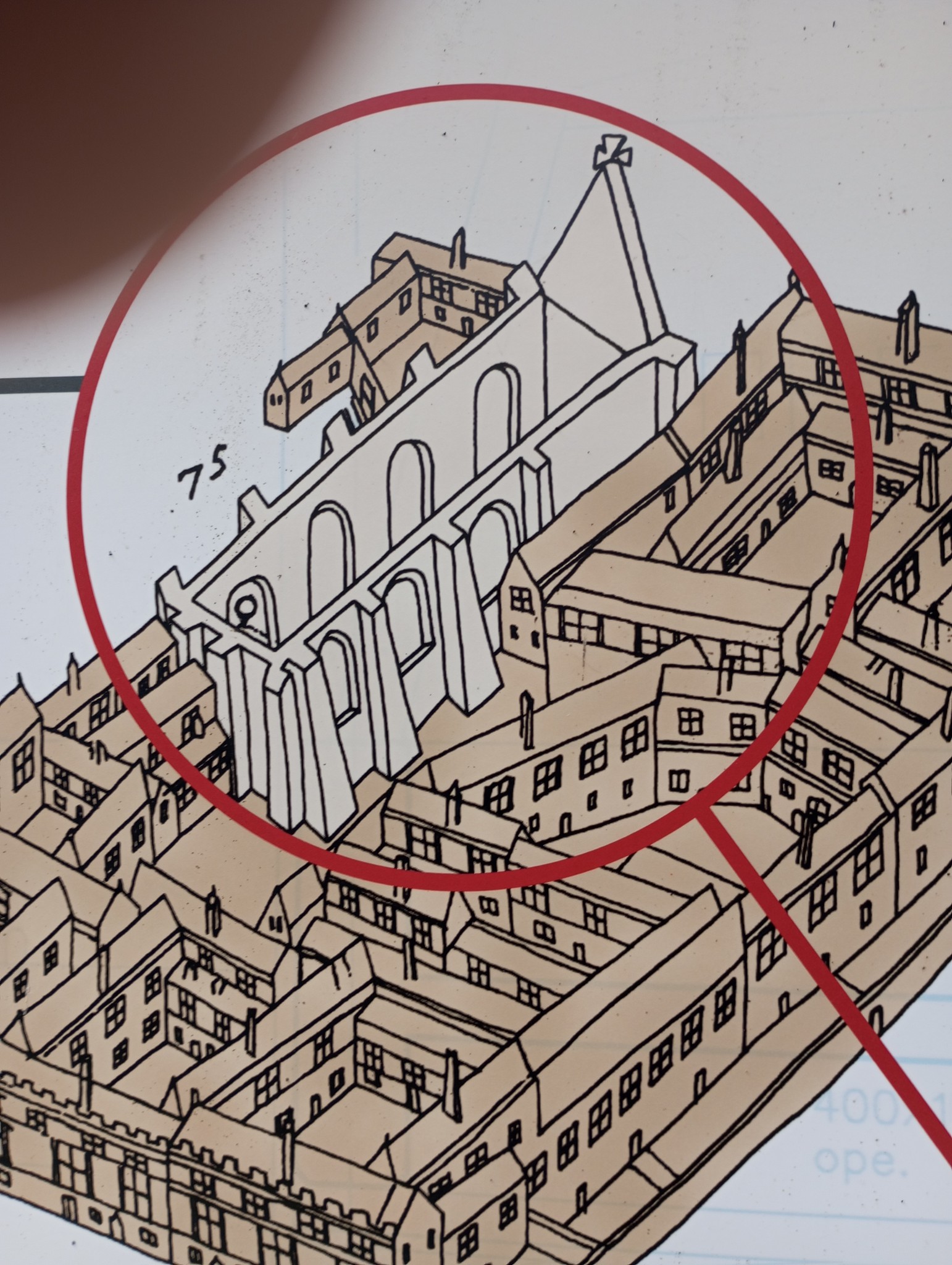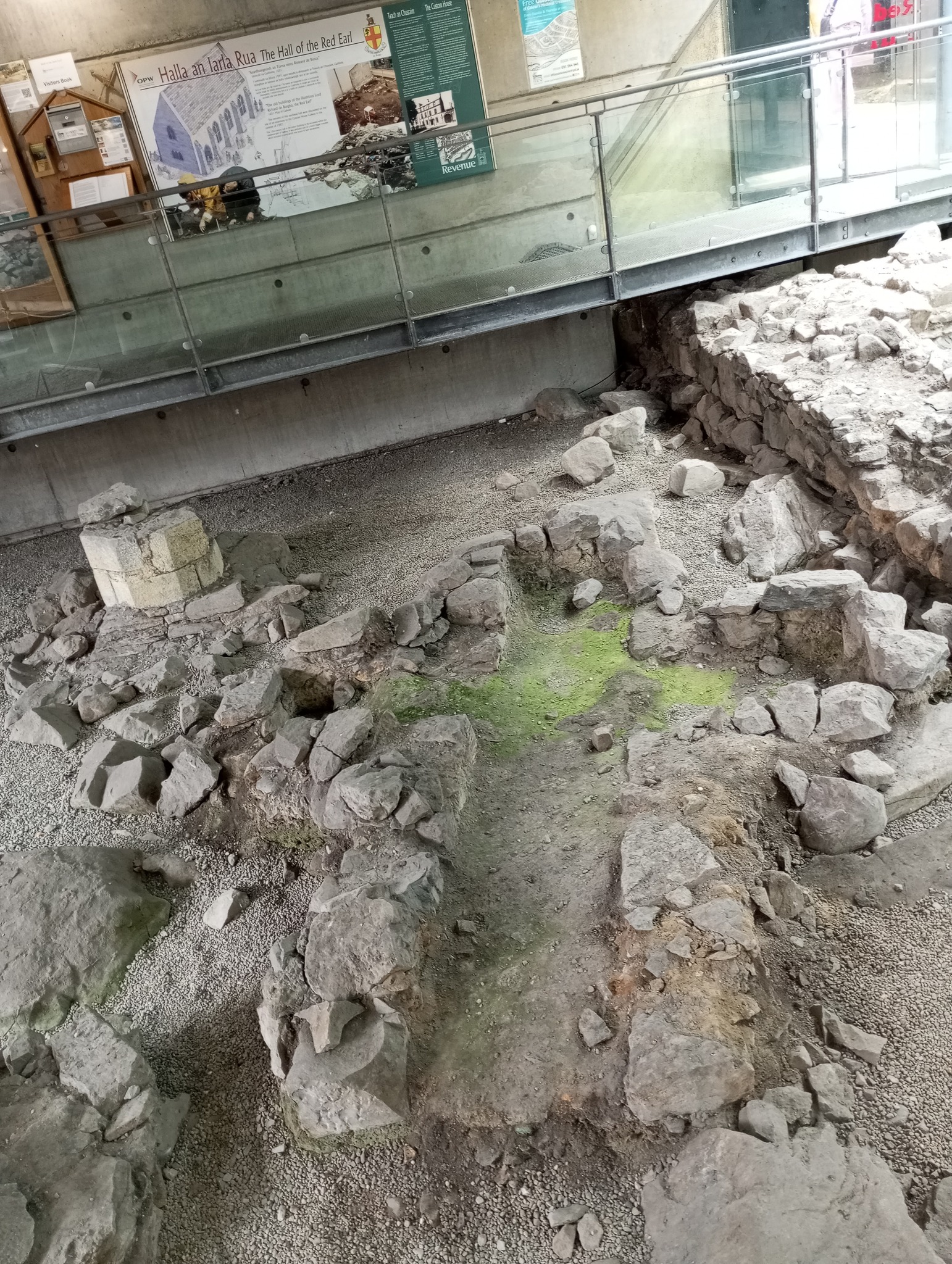The 1651 map of Galway depicts the ruins of the Hall of the Red Earl with a cross placed on top of its southern gable end. It would have been placed there to mark the site of St. Brendan’s Well. St. Brendan, patron of Annaghdown diocese, whose Feast Day, 16 May, is ‘usually kept holy by the key-street dwellers of old’. This well is situated under the current Custom House building. There is a small medieval stone carving of a curled-up deer on the front of the Custom House to mark the position of the well. This carving has been moved from its original position, which was just to the right of the Custom House’s car park gate.